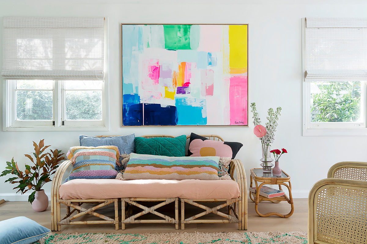 My original artworks have been exhibited internationally and now live in homes of collectors across the globe, each a unique expression of joy & colour.